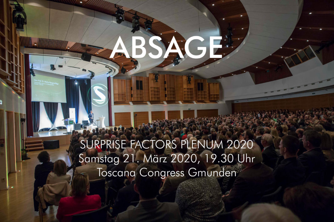 Aufgrund der heute Mittag durch die Bundesregierung verkündeten Schutzmaßnahmen gegen das Corona-Virus (COVID-19) müssen wir das SURPRISE FACTORS PLENUM am Samstag, 21. März 2020 absagen.